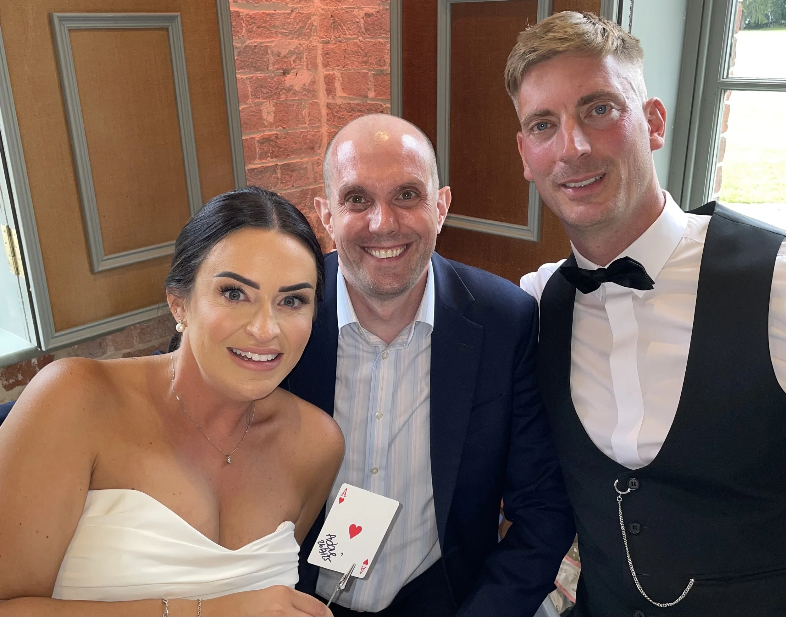 Steve and Marion: “Thank you David for being part of our wedding celebration, the guests have said how brilliant you were - you amazed the children and adults alike , they are still trying to work out how you did the card tricks. Having you there at the canapé reception and whilst the food was being served made it much more enjoyable.”
